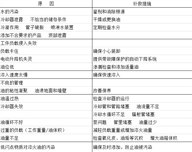 淬火油在使用過程中和環(huán)境是*重要的,表1、表2、表3、表4、表5對淬火油在使用過程中易出現(xiàn)的問題和解決措施做簡單介紹。